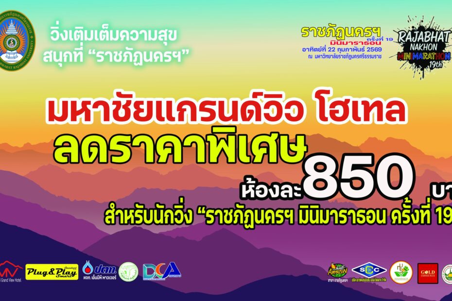 ข่าวดีสำหรับนักวิ่งทุกท่าน!มหาชัยแกรนด์วิว โฮเทล มอบ ส่วนลดพิเศษ ห้องพักราคาเพียง 850 บาท/ห้อง/คืน สำหรับผู้เข้าร่วมกิจกรรม “ราชภัฏนครฯ มินิมาราธอน ครั้งที่...