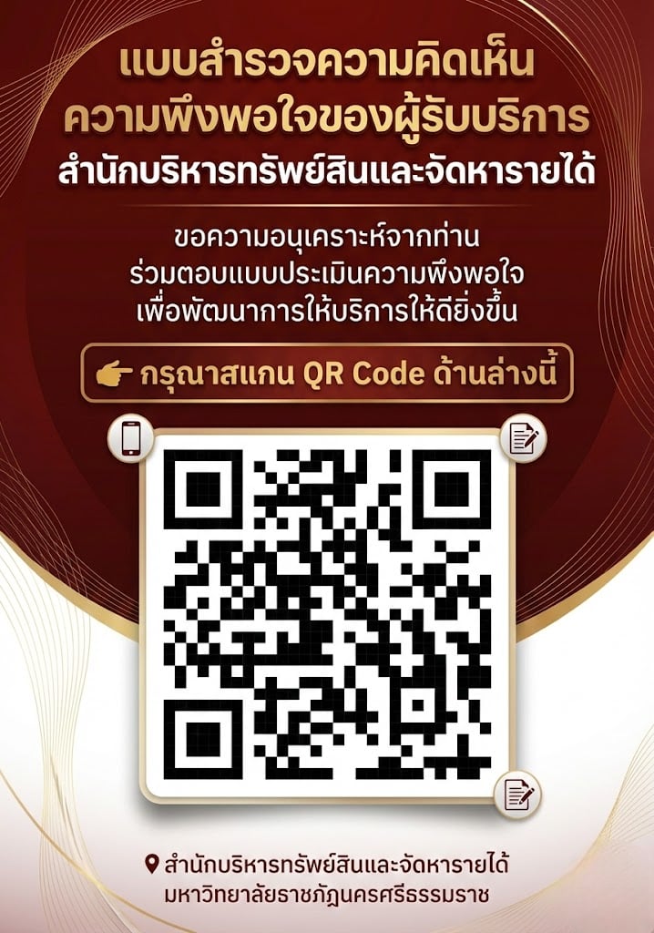 สำนักบริหารทรัพย์สินและจัดหารายได้ มหาวิทยาลัยราชภัฏนครศรีธรรมราชได้รับมอบหมายให้เข้าร่วมการประชุมแลกเปลี่ยนเรียนรู้และสร้างเครือข่ายมหาวิทยาลัย กลุ่มการพัฒนาชุมชนท้องถิ่นหรือชุมชนอื่น ภายใต้หัวข้อ “ต้นแบบเรือธงด้านการบริการวิชาการ” จัดโดย สำนักงานปลัดกระทรวงการอุดมศึกษา วิทยาศาสตร์ วิจัยและนวัตกรรมร่วมกับ มหาวิทยาลัยบูรพา วันพฤหัสบดีที่ 19 มีนาคม พ.ศ. 2569 ณ ห้องประชุม นิพนธ์ บุญญภัทโร อาคารคณะบริหารธุรกิจ ชั้น 4...