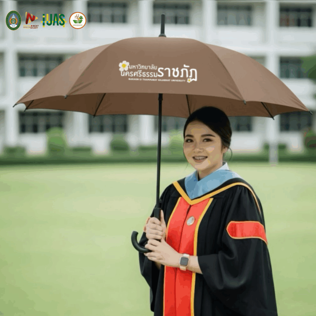 จำหน่ายโดย : สำนักบริหารทรัพย์สินและจัดหารายได้ มหาวิทยาลัยราชภัฏนครศรีธรรมราช บัณฑิตที่มาร่วมพิธี สามารถแวะมาซื้อร่ม NSTRU