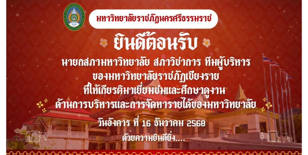 สำนักบริหารทรัพย์สินและจัดหารายได้ มหาวิทยาลัยราชภัฏนครศรีธรรมราช ขอต้อนรับ คณะผู้บริหาร สภามหาวิทยาลัย และสภาวิชาการ มหาวิทยาลัยราชภัฏเชียงราย ในโอกาสรับการเยี่ยมชมและศึกษาดูงาน ณ ท่าอากาศยานนครศรีธรรมราช จังหวัดนครศรีธรรมราช Leave a Reply Cancel replyYour email address will not be published. Required fields are marked *Name * Email * Website Comment * Save my name, email, and website in this browser for the next time I comment.