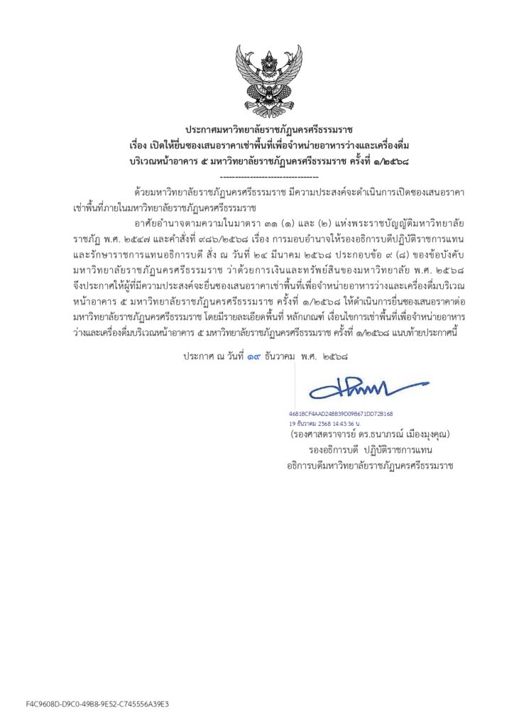 มหาวิทยาลัยราชภัฏนครศรีธรรมราช ครั้งที่ 1/2568