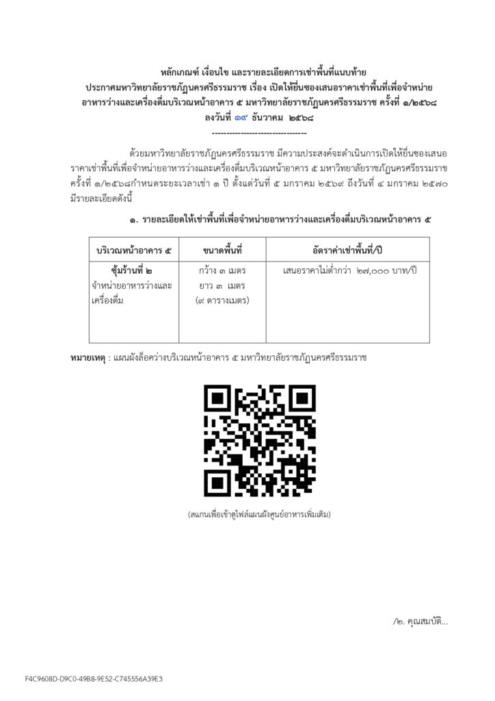 ประชาสัมพันธ์เปิดให้ยื่นซองเสนอราคาเช่าพื้นที่ อาคาร 5