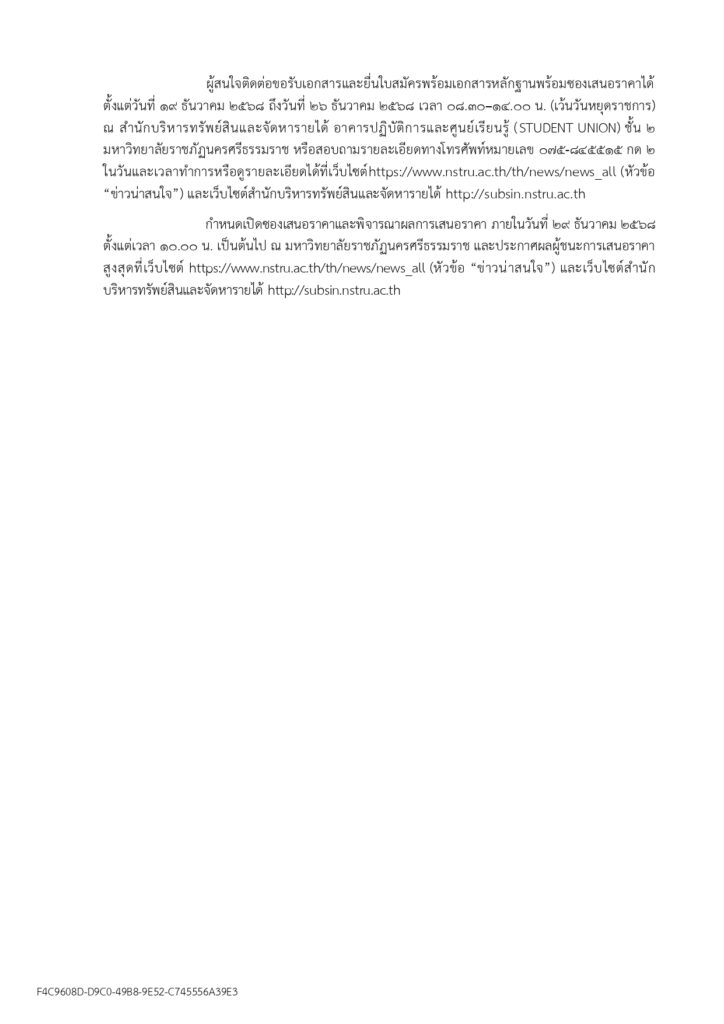 กำหนดการยื่นซองเสนอราคา วันที่ 19 – 26 ธันวาคม 2568