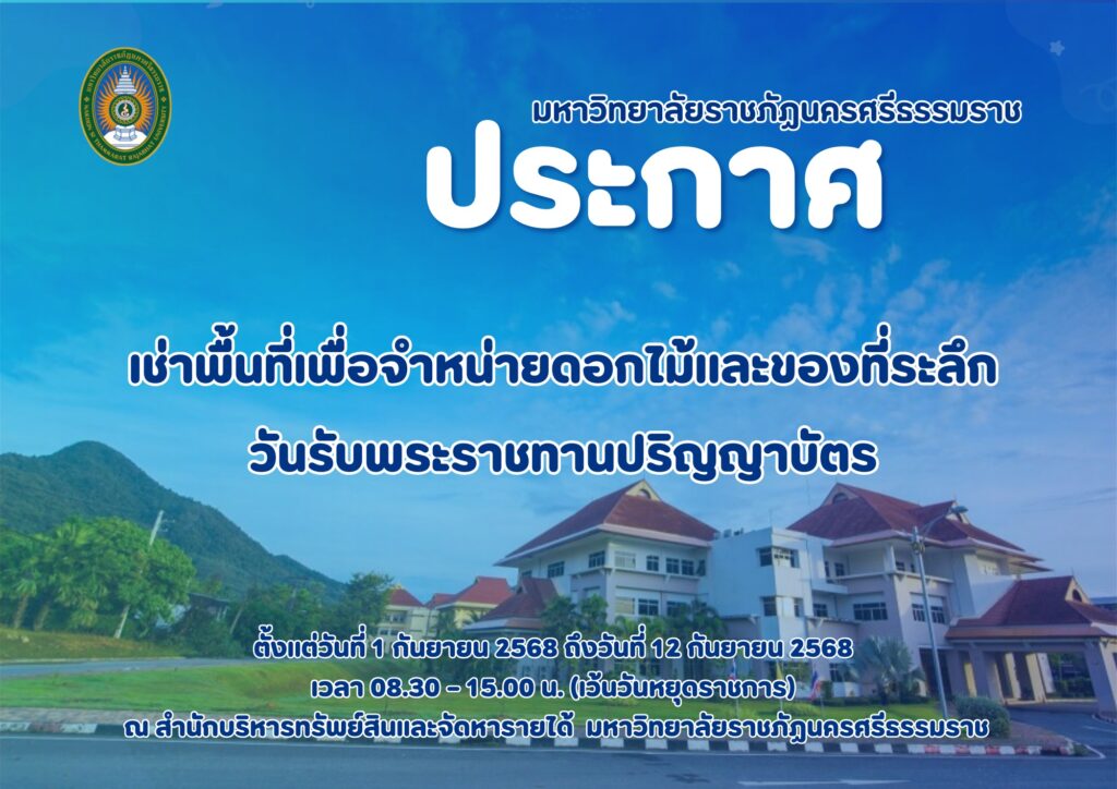 เปิดรับสมัครผู้สนใจเช่าพื้นที่เพื่อจำหน่าย ดอกไม้และของที่ระลึก ในระหว่างพิธีพระราชทานปริญญาบัตร ประจำปี 2568