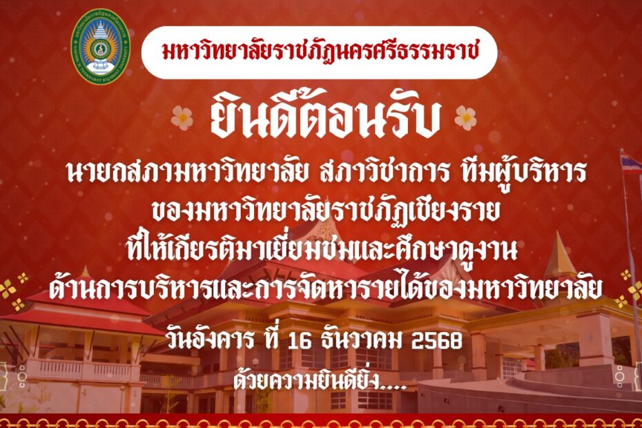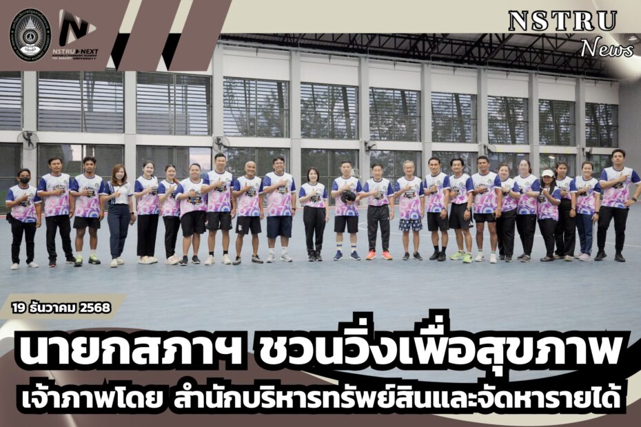 วันที่ 19 ธันวาคม 2568 เวลา 05.40 น. ณ สนามฟุตซอล มหาวิทยาลัยราชภัฏนครศรีธรรมราช โดยคณะผู้บริหารและบุคลากร ร่วมกิจกรรม “นายกสภาฯ ชวนออกกำลังกายเพื่อสุขภาพ” โดยมี สำนักบริหารทรัพย์สินและจัดหารายได้ มหาวิทยาลัยราชภัฏนครศรีธรรมราช เป็นเจ้าภาพในการจัดกิจกรรมกิจกรรมดังกล่าวจัดขึ้นเพื่อส่งเสริมการมีสุขภาพกายที่แข็งแรงของผู้บริหารและบุคลากร อีกทั้งยังเป็นโอกาสในการหารือและแลกเปลี่ยนความคิดเห็นเกี่ยวกับแนวทางการขับเคลื่อนการดำเนินงานของมหาวิทยาลัย ในบรรยากาศที่เป็นกันเองและสร้างสรรค์#สำนักบริหารทรัพย์สินและจัดหารายได้ #มหาวิทยาลัยราชภัฏนครศรีธรรมราช #เจ้าภาพจัดกิจกรรม #ออกกำลังกายเพื่อสุขภาพ